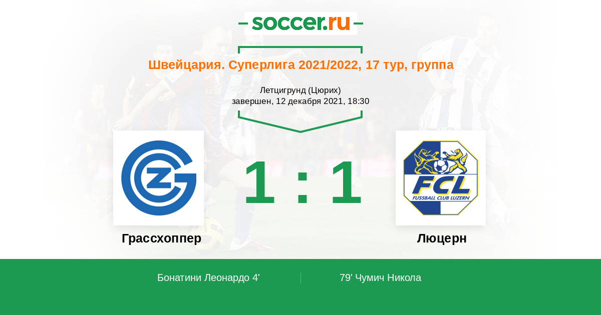 Швейцария. Суперлига 13.03.2022 Люцерн Логотип футбольный клуб Люцерн 1:0 Логотип футбольный клуб Грассхоппер (Цюрих) Грассхоппер