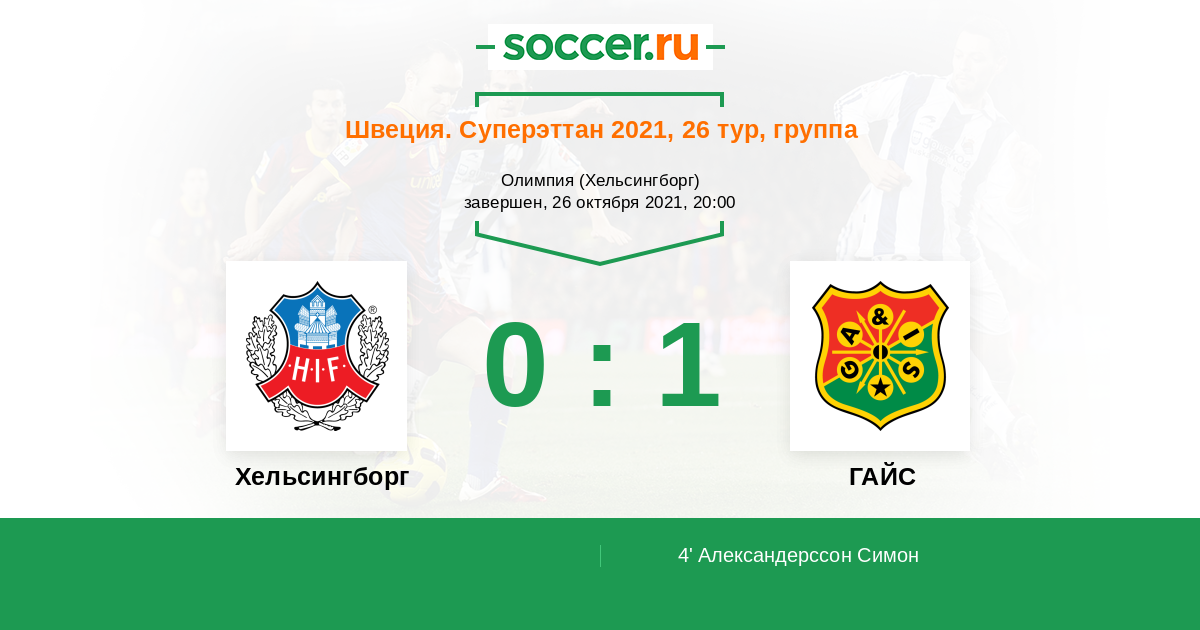 Швеция. Суперэттан 23.05.2021 ГАЙС Логотип футбольный клуб ГАЙС (Гетеборг) 0:1 Логотип футбольный клуб Хельсингборг Хельсингборг