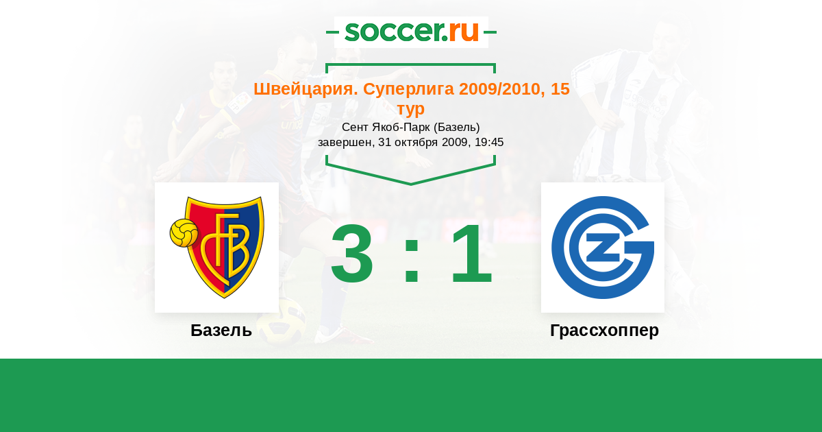 Швейцария. Суперлига 16.08.2009 Грассхоппер Логотип футбольный клуб Грассхоппер (Цюрих) 3:1 Логотип футбольный клуб Базель Базель