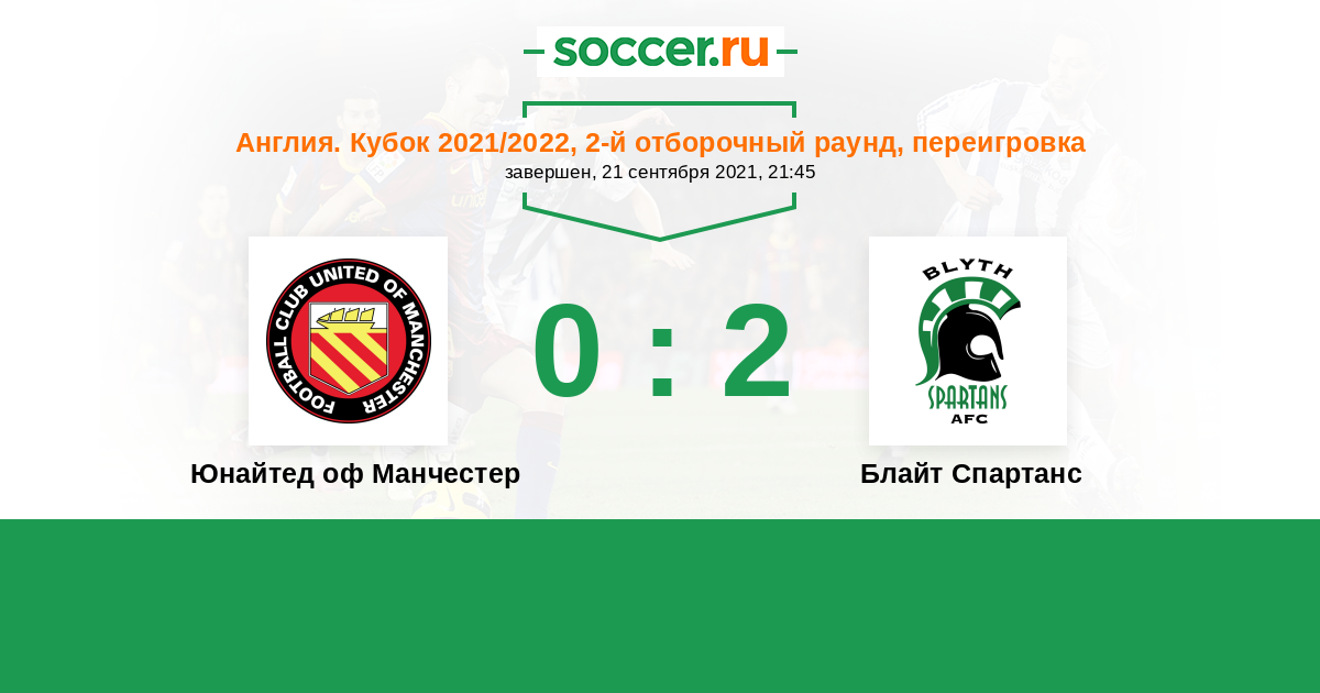 Англия. Кубок 18.09.2021 Блайт Спартанс Логотип футбольный клуб Блайт Спартанс 1:1 Логотип футбольный клуб Юнайтед оф Манчестер Юнайтед оф Манчестер