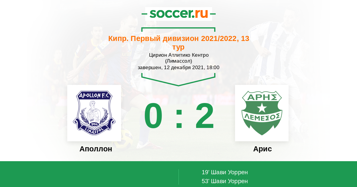Кипр. Первый Дивизион 19.03.2014 Аполлон Логотип футбольный клуб Аполлон (Лимассол) 3:2 Логотип футбольный клуб Арис (Лимассол) Арис