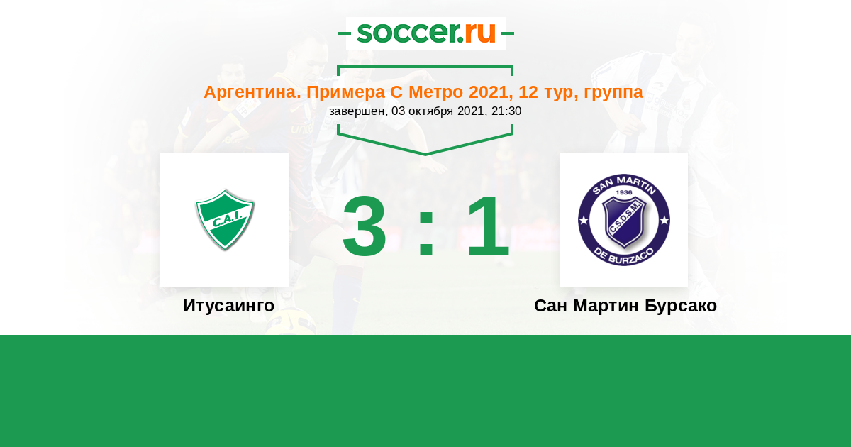 Аргентина. Примера Б Метро 04.03.2026 Сан Мартин Бурсако Логотип футбольный клуб Сан Мартин Бурсако 3:0 Логотип футбольный клуб Итусаинго Итусаинго