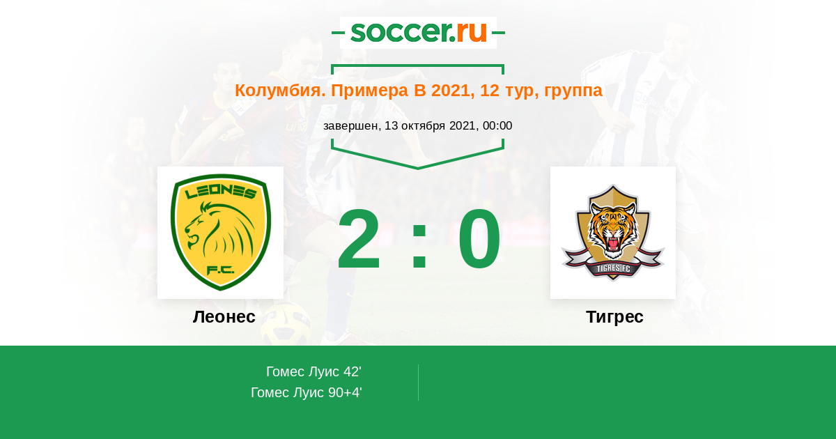 Колумбия. Примера B 13.02.2022 Леонес Логотип футбольный клуб Леонес (Итагуи) 3:1 Логотип футбольный клуб Тигрес (Сипакира) Тигрес