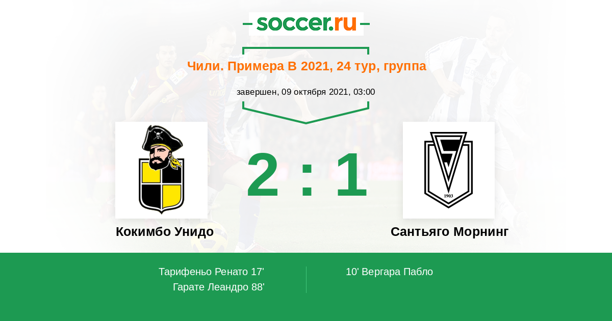 Чили. Примера В 25.03.2017 Сантьяго Морнинг Логотип футбольный клуб Сантьяго Морнинг 2:1 Логотип футбольный клуб Кокимбо Унидо Кокимбо Унидо