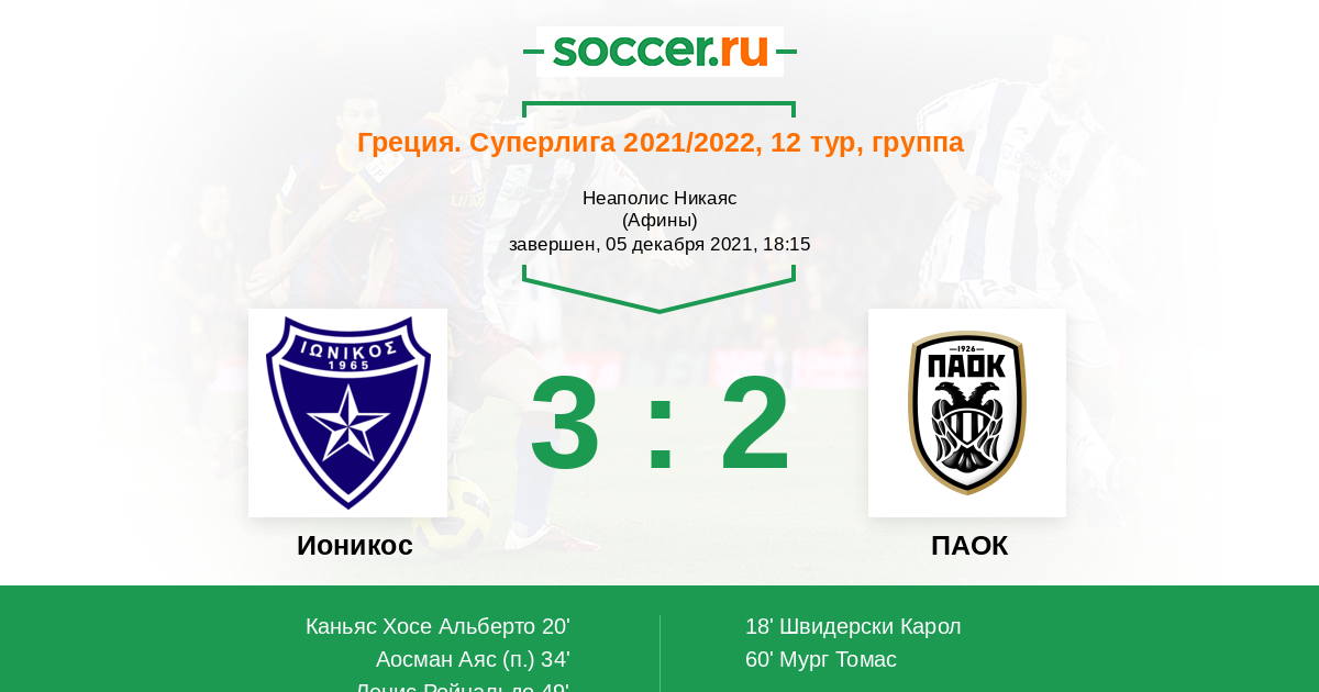 Греция. Суперлига 05.03.2023 ПАОК Логотип футбольный клуб ПАОК (Салоники) 6:0 Логотип футбольный клуб Ионикос (Никея) Ионикос