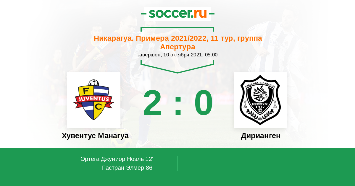 Никарагуа. Примера 19.10.2020 Хувентус Манагуа Логотип футбольный клуб Хувентус Манагуа 3:1 Логотип футбольный клуб Дирианген (Дириамба) Дирианген