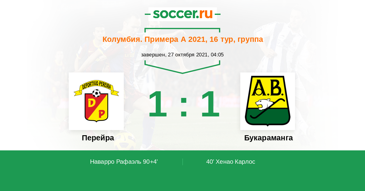 Колумбия. Примера А 16.10.2020 Букараманга Логотип футбольный клуб Букараманга 1:0 Логотип футбольный клуб Перейра Перейра