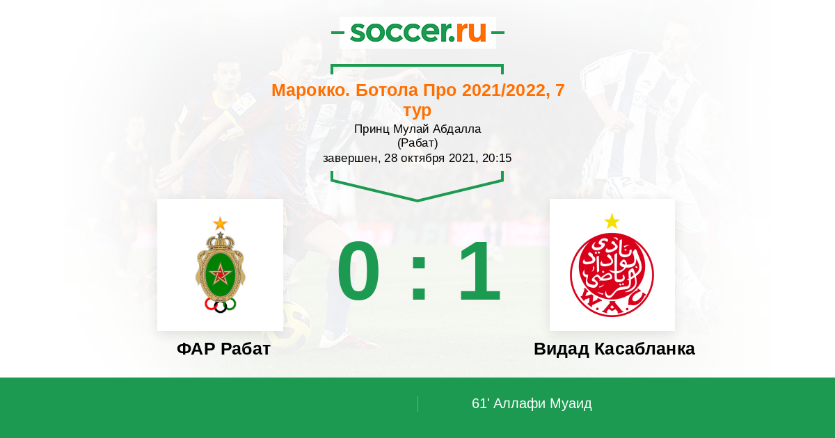 Марокко. Ботола Про 28.07.2021 Видад Касабланка Логотип футбольный клуб Видад Касабланка 2:0 Логотип футбольный клуб ФАР Рабат ФАР Рабат