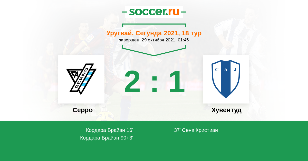 Уругвай. Сегунда 15.07.2021 Хувентуд Логотип футбольный клуб Хувентуд (Лас-Пьедрас) 3:1 Логотип футбольный клуб Серро (Монтевидео) Серро