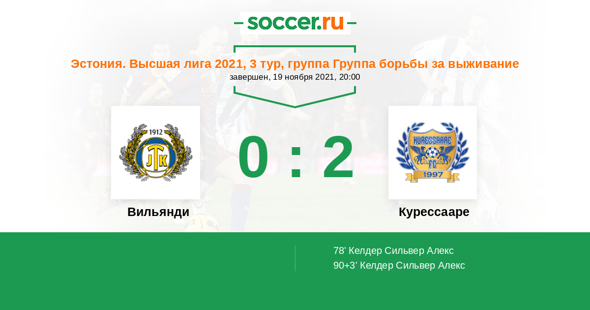 Эстония. Высшая лига 03.10.2021 Курессааре Логотип футбольный клуб Курессааре 1:0 Логотип футбольный клуб Вильянди Вильянди