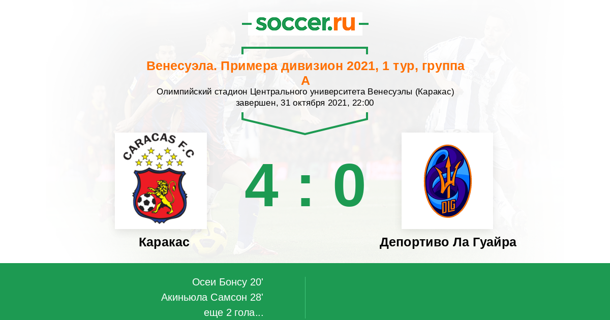 Венесуэла. Примера дивизион 01.10.2011 Каракас Логотип футбольный клуб Каракас 2:0 Логотип футбольный клуб Депортиво Ла Гуайра (Каракас) Депортиво Ла Гуайра