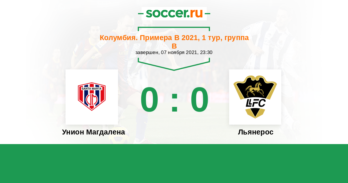 Колумбия. Примера B 04.12.2021 Льянерос Логотип футбольный клуб Льянерос (Вильявисенсио) 1:2 Логотип футбольный клуб Унион Магдалена (Санта Марта) Унион Магдалена
