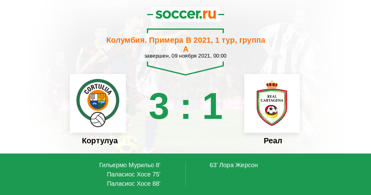 Колумбия. Примера B 20.09.2019 Кортулуа Логотип футбольный клуб Кортулуа 1:0 Логотип футбольный клуб Реал (Картахена) Реал
