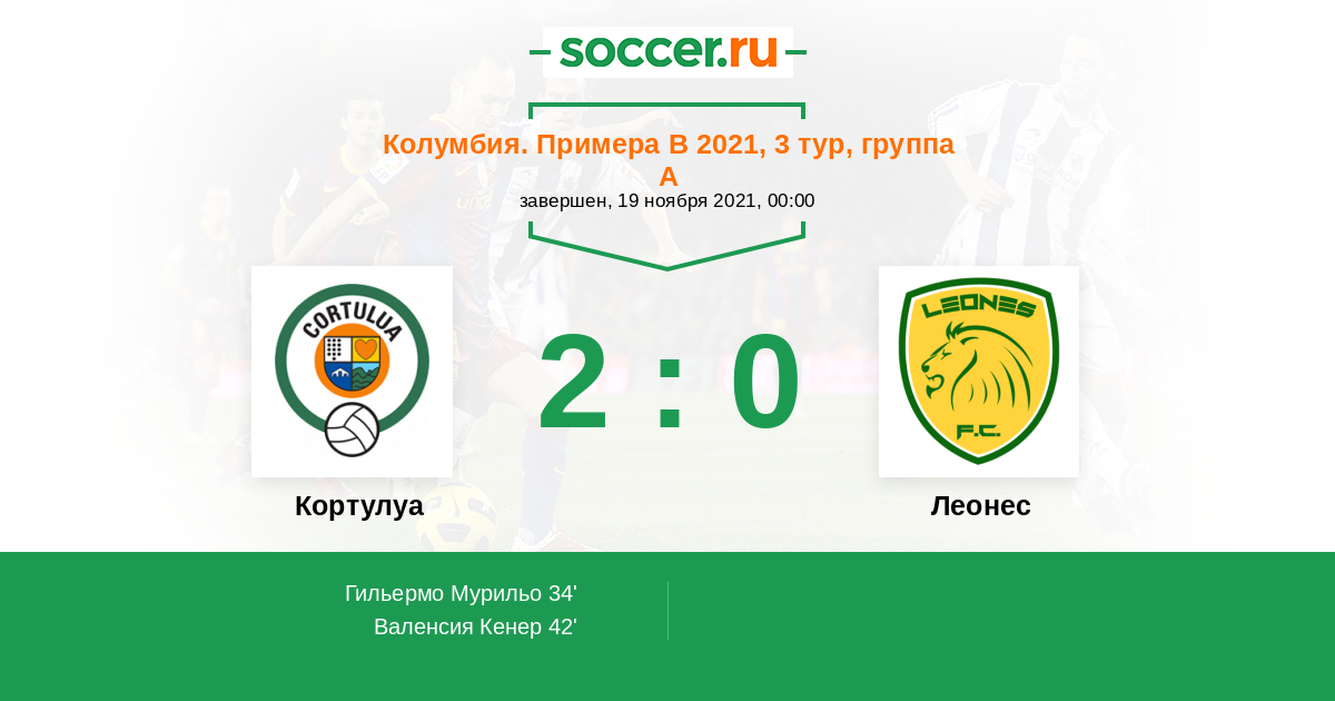 Колумбия. Примера B 28.10.2012 Кортулуа Логотип футбольный клуб Кортулуа 2:1 Логотип футбольный клуб Леонес (Итагуи) Леонес