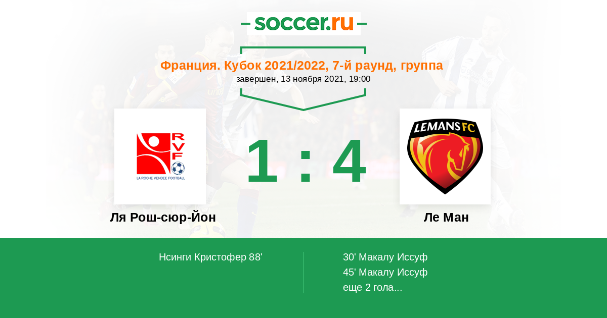 Франция. Кубок 13.11.2021 Ля Рош-сюр-Йон Логотип футбольный клуб Ля Рош-сюр-Йон 1:4 Логотип футбольный клуб Ле Ман Ле Ман