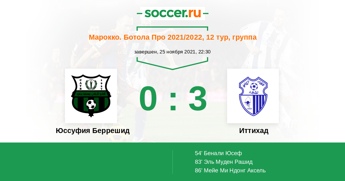 Марокко. Ботола 2 26.02.2012 Юссуфия Беррешид Логотип футбольный клуб Юссуфия Беррешид 4:1 Логотип футбольный клуб ИР Анже (Танжер) ИР Анже