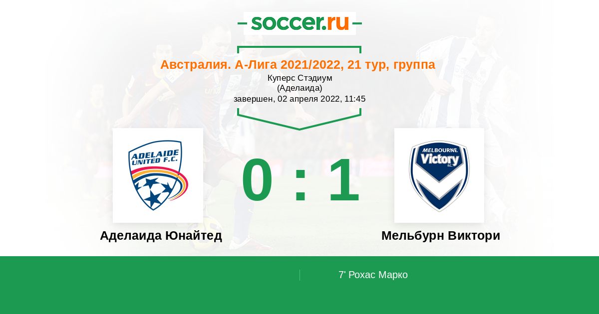 Австралия. А-Лига 11.12.2021 Аделаида Юнайтед Логотип футбольный клуб Аделаида Юнайтед 1:2 Логотип футбольный клуб Мельбурн Виктори Мельбурн Виктори