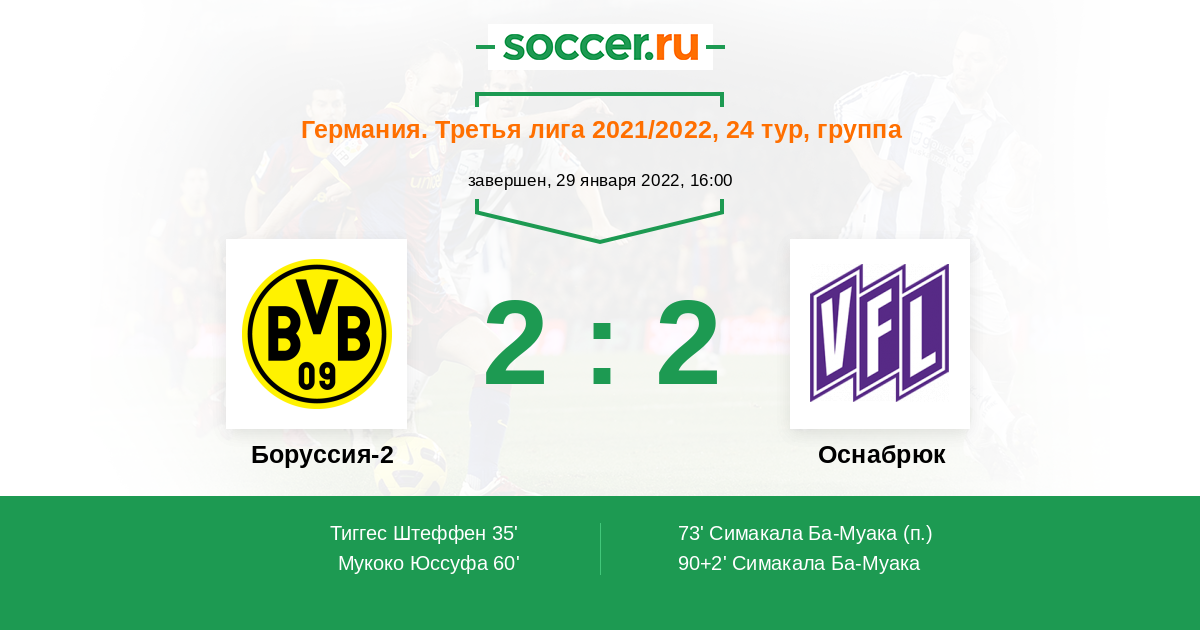 Германия. Третья лига 24.01.2023 Боруссия-2 Логотип футбольный клуб Боруссия-2 (Дортмунд) 1:2 Логотип футбольный клуб Оснабрюк Оснабрюк
