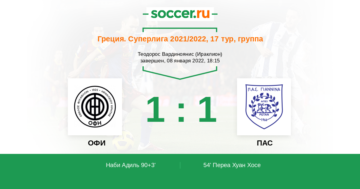 Греция. Суперлига 27.09.2021 ПАС Логотип футбольный клуб ПАС (Яннина) 1:1 Логотип футбольный клуб ОФИ (Ираклион) ОФИ