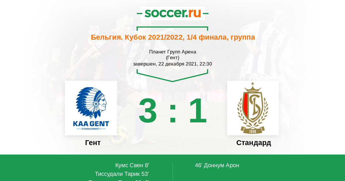 Бельгия. Про-Лига 28.11.2021 Гент Логотип футбольный клуб Гент 3:1 Логотип футбольный клуб Стандард (Льеж) Стандард