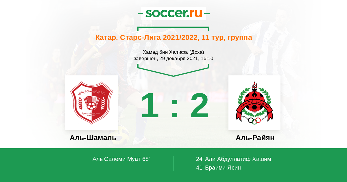 Катар. Старс Лига 22.11.2024 Аль-Райян Логотип футбольный клуб Аль-Райян 1:2 Логотип футбольный клуб Аль-Шамаль (Аш-Шамаль) Аль-Шамаль