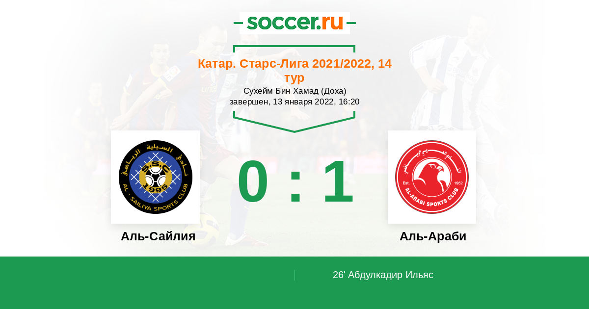 Катар. Старс Лига 18.01.2014 Аль-Сайлия Логотип футбольный клуб Аль-Сайлия (Доха) 2:3 Логотип футбольный клуб Аль-Араби (Доха) Аль-Араби