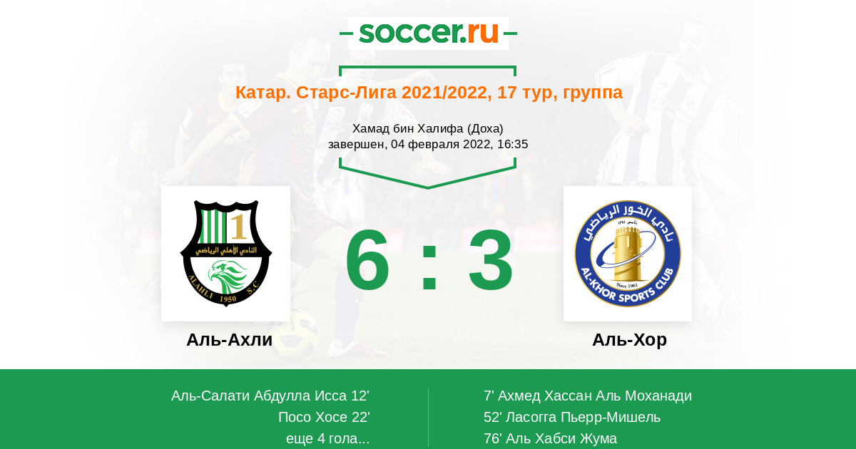 Катар. Старс Лига 10.03.2006 Аль-Хор Логотип футбольный клуб Аль-Хор 0:4 Логотип футбольный клуб Аль-Ахли (Доха) Аль-Ахли