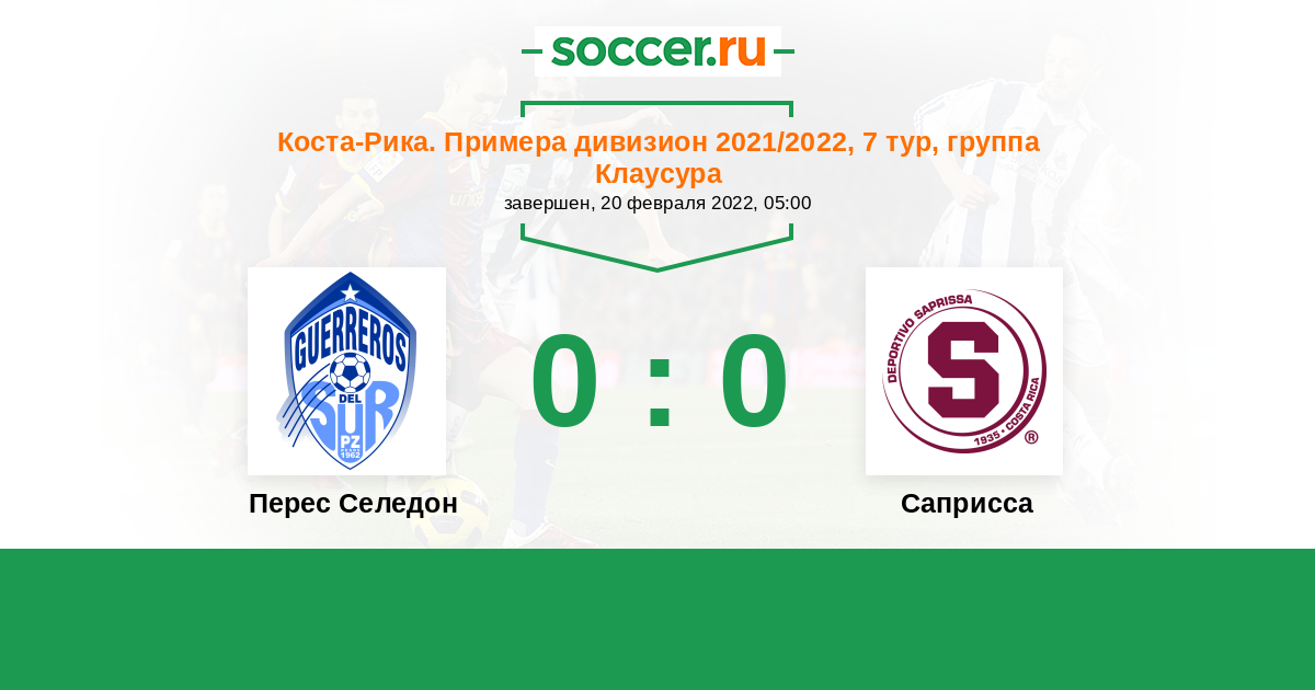 Коста-Рика. Примера дивизион 02.05.2022 Саприсса Логотип футбольный клуб Саприсса (Сан Хосе) 2:1 Логотип футбольный клуб Зеледон (Сан Исидро де Эль Хенерал) Зеледон