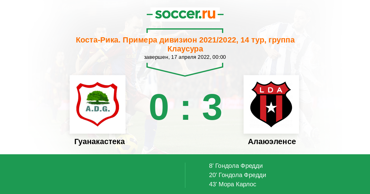 Коста-Рика. Примера дивизион 23.01.2022 Алаюэленсе Логотип футбольный клуб Алаюэленсе (Алаюэла) 4:0 Логотип футбольный клуб Гуанакастека (Никойя) Гуанакастека