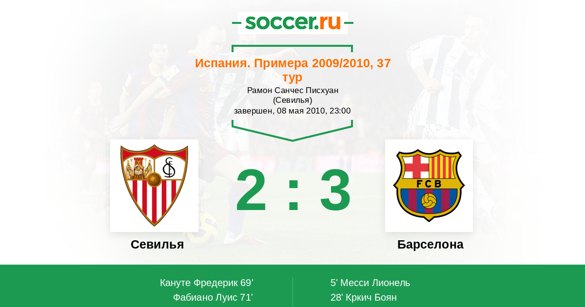 Испания. Примера 30.11.2008 Севилья Логотип футбольный клуб Севилья 0:3 Логотип футбольный клуб Барселона Барселона