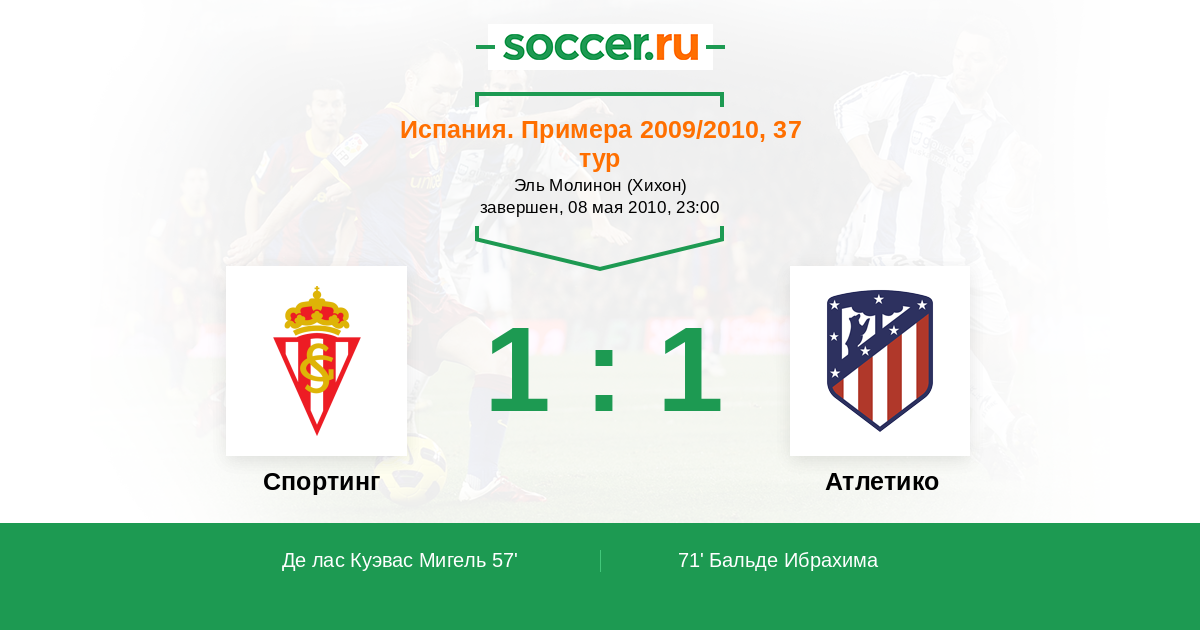Испания. Примера 17.01.2010 Атлетико Логотип футбольный клуб Атлетико (Мадрид) 3:2 Логотип футбольный клуб Спортинг (Хихон) Спортинг