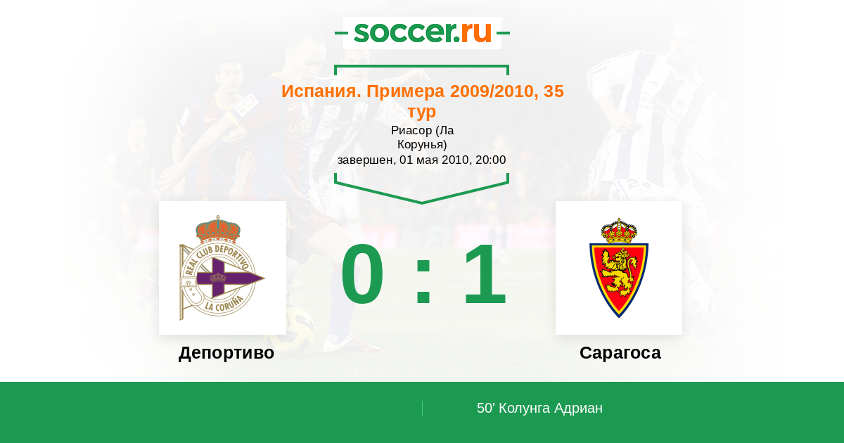 Испания. Примера 03.01.2010 Сарагоса Логотип футбольный клуб Сарагоса 0:0 Логотип футбольный клуб Депортиво (Ла-Корунья) Депортиво