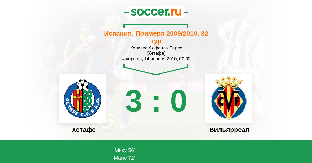 Испания. Примера 06.12.2009 Вильярреал Логотип футбольный клуб Вильярреал 3:2 Логотип футбольный клуб Хетафе Хетафе