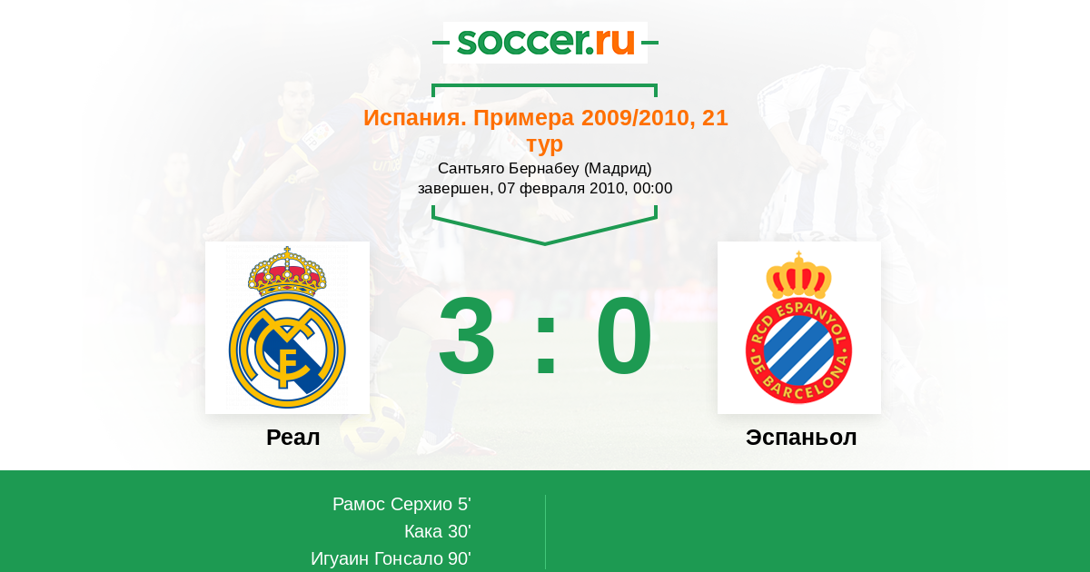Испания. Примера 03.02.2006 Реал Логотип футбольный клуб Реал (Мадрид) 4:0 Логотип футбольный клуб Эспаньол (Барселона) Эспаньол