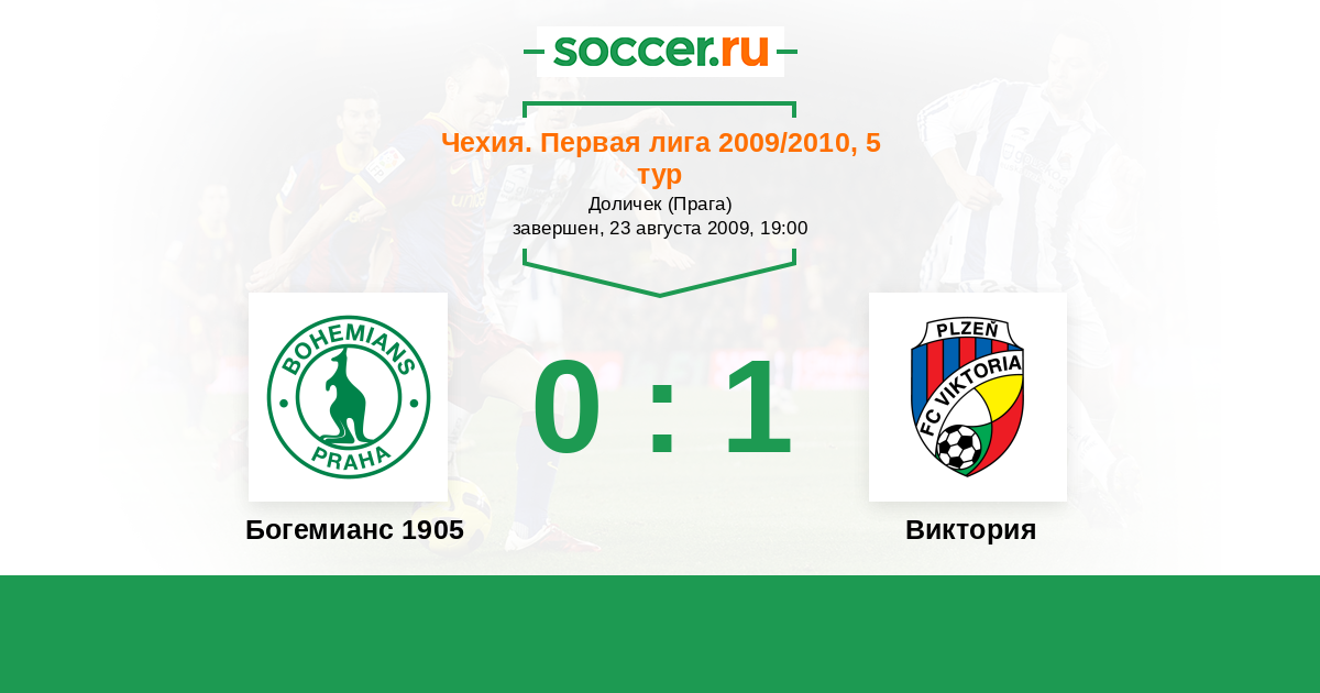 Чехия. Первая Лига 01.08.2010 Виктория Логотип футбольный клуб Виктория (Пльзень) 2:1 Логотип футбольный клуб Богемианс 1905 (Прага) Богемианс 1905