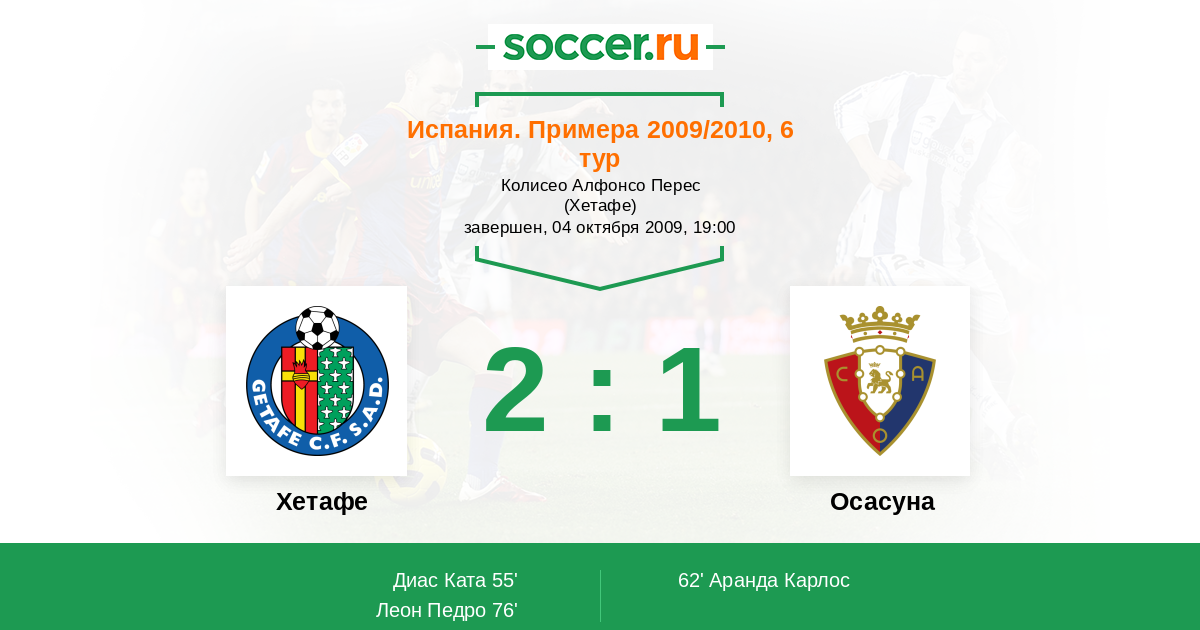 Испания. Примера 19.09.2020 Хетафе Логотип футбольный клуб Хетафе 1:0 Логотип футбольный клуб Осасуна (Памплона) Осасуна