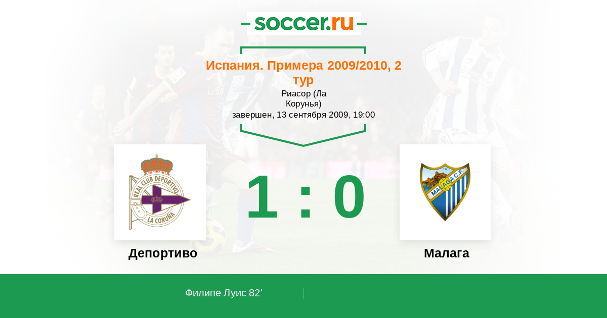 Испания. Примера 07.02.2010 Малага Логотип футбольный клуб Малага 0:0 Логотип футбольный клуб Депортиво (Ла-Корунья) Депортиво