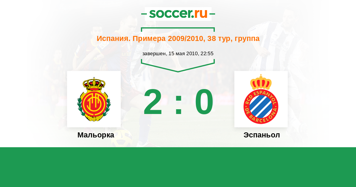 Испания. Примера 17.10.2010 Мальорка Логотип футбольный клуб Мальорка (Пальма-де-Мальорка) 0:1 Логотип футбольный клуб Эспаньол (Барселона) Эспаньол