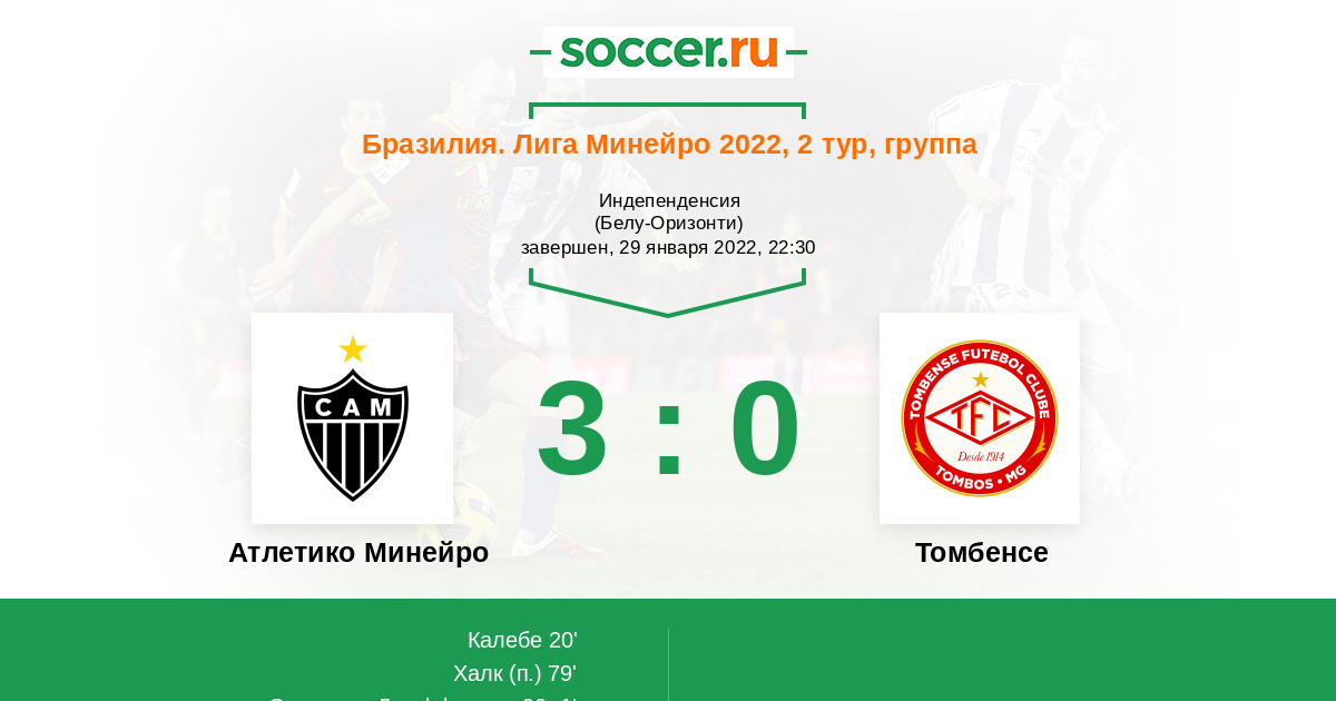 Бразилия. Лига Минейро 29.01.2023 Томбенсе Логотип футбольный клуб Томбенсе (Томбус) 1:2 Логотип футбольный клуб Атлетико Минейро (Белу-Оризонти) Атлетико Минейро