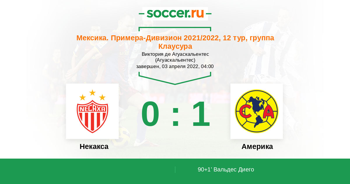 Мексика. Примера-Дивизион 04.04.2021 Америка Логотип футбольный клуб Америка (Мехико) 2:1 Логотип футбольный клуб Некакса (Агуаскальентес) Некакса