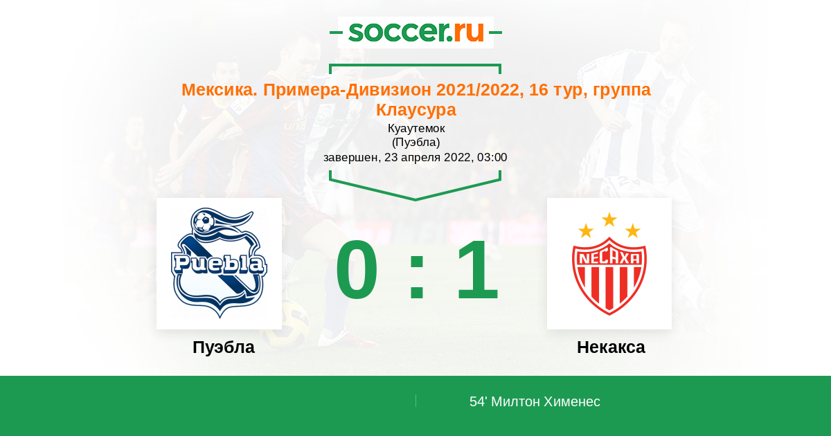 Мексика. Примера-Дивизион 16.10.2021 Некакса Логотип футбольный клуб Некакса (Агуаскальентес) 0:1 Логотип футбольный клуб Пуэбла (Пуэбла-де-Сарагоса) Пуэбла