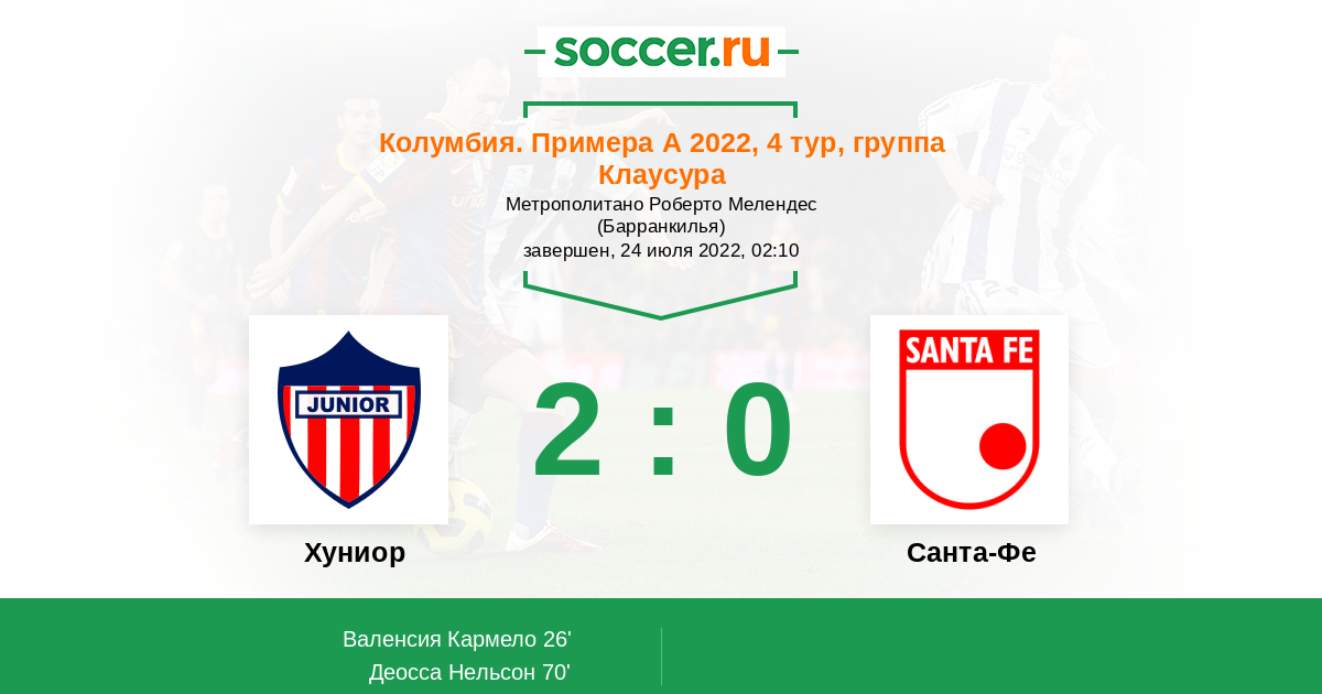 Колумбия. Примера А 03.02.2022 Санта-Фе Логотип футбольный клуб Санта-Фе (Богота) 2:1 Логотип футбольный клуб Хуниор (Барранкилья) Хуниор