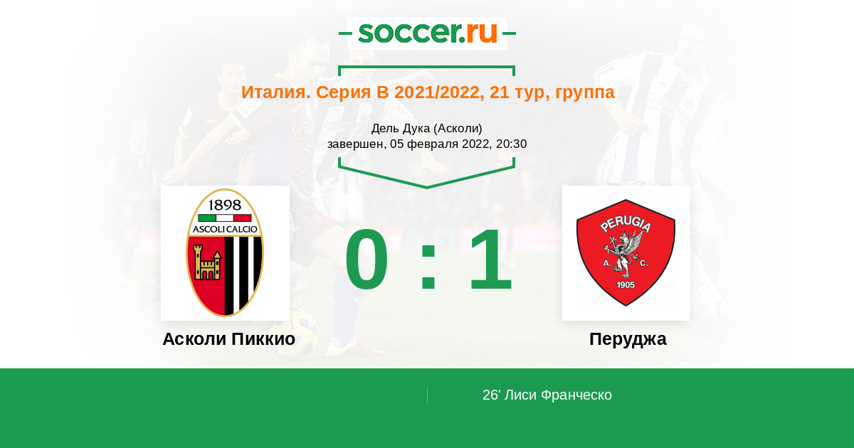 Италия. Серия В 11.02.2023 Асколи Пиккио Логотип футбольный клуб Асколи Пиккио (Асколи-Пичено) 1:0 Логотип футбольный клуб Перуджа Перуджа