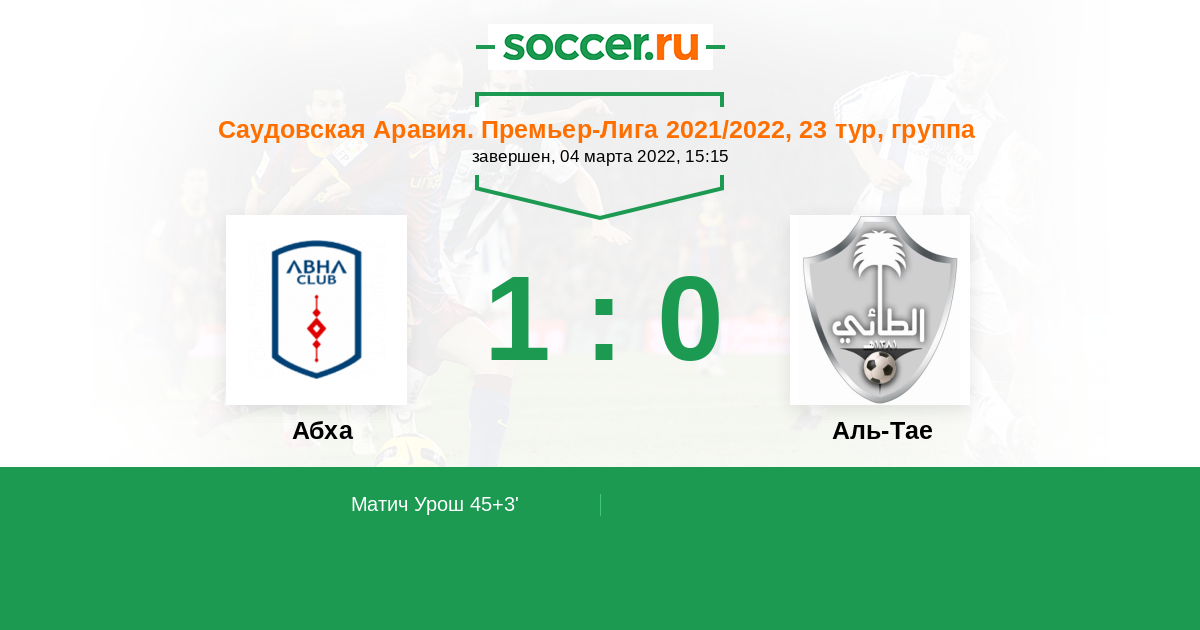 Саудовская Аравия. Премьер-Лига 01.03.2024 Абха Логотип футбольный клуб Абха 2:0 Логотип футбольный клуб Аль-Тае (Хаиль) Аль-Тае