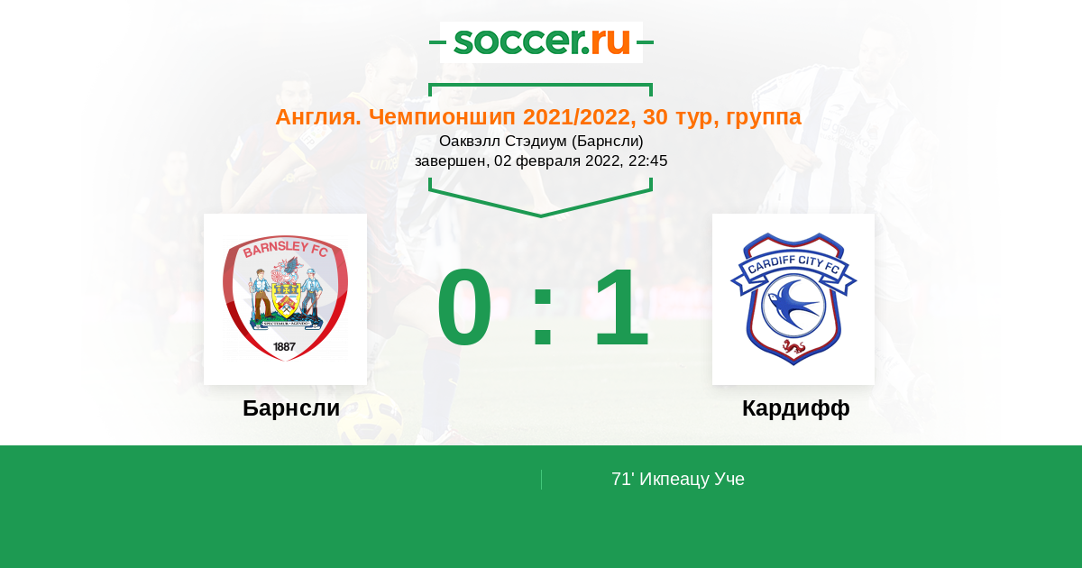 Англия. Чемпионшип 06.03.2018 Кардифф Логотип футбольный клуб Кардифф 2:1 Логотип футбольный клуб Барнсли Барнсли
