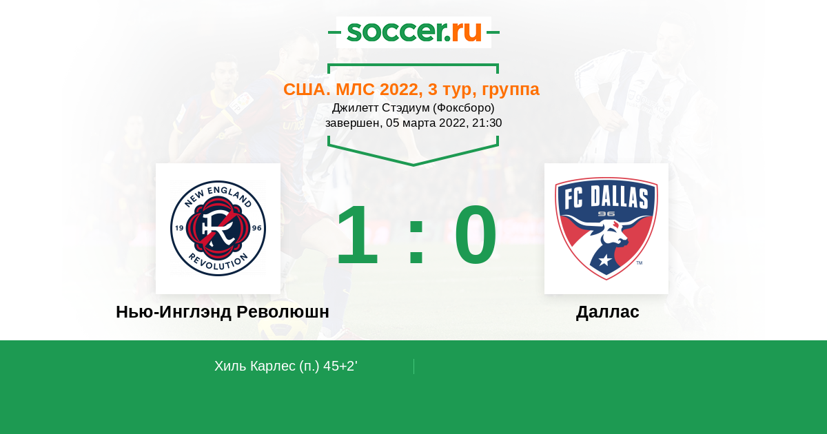 США. МЛС 30.03.2013 Нью-Инглэнд Революшн Логотип футбольный клуб Нью-Инглэнд Революшн (Фоксборо) 0:1 Логотип футбольный клуб Даллас Даллас