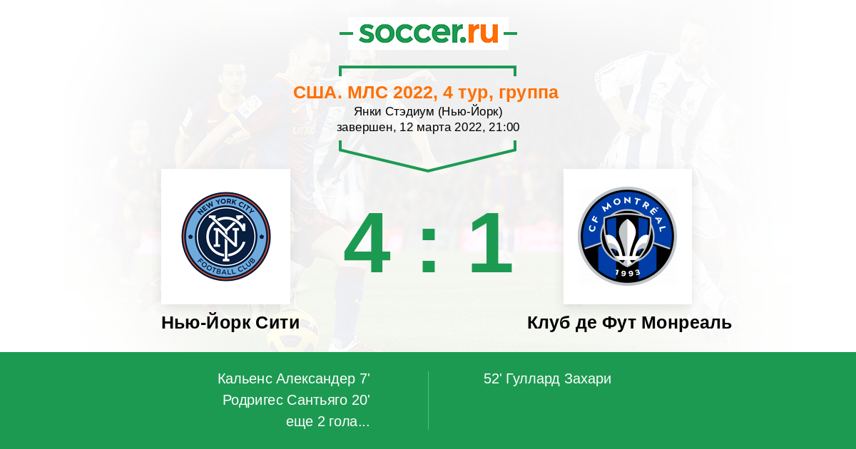 США. МЛС 06.04.2019 Нью-Йорк Сити Логотип футбольный клуб Нью-Йорк Сити 0:0 Логотип футбольный клуб Клуб де Фут Монреаль Клуб де Фут Монреаль