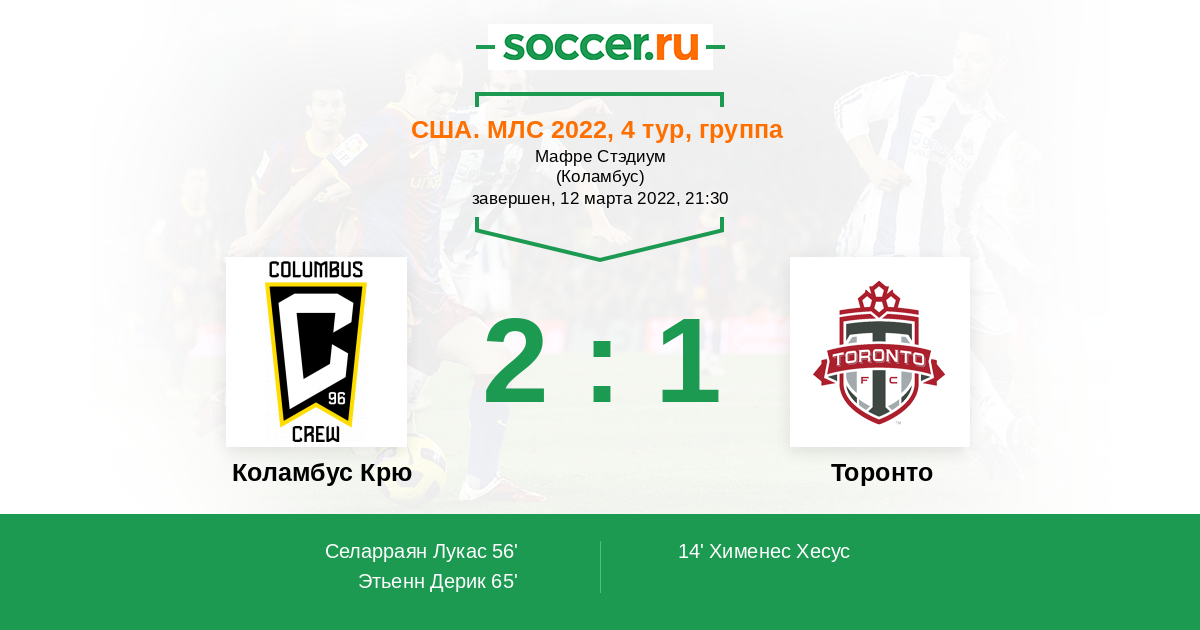 Товарищеские матчи. Клубы 01.04.2021 Коламбус Крю Логотип футбольный клуб Коламбус Крю 2:4 Логотип футбольный клуб Торонто Торонто