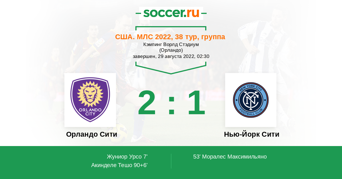 США. МЛС 26.07.2021 Нью-Йорк Сити Логотип футбольный клуб Нью-Йорк Сити 5:0 Логотип футбольный клуб Орландо Сити Орландо Сити
