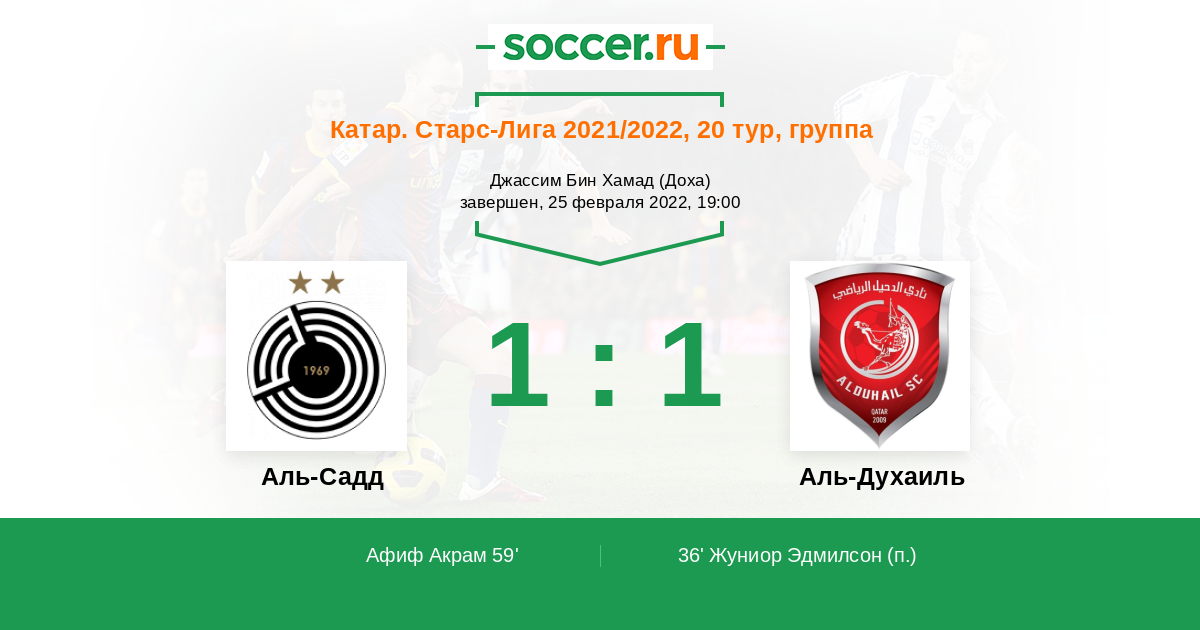 Катар. Старс Лига 22.02.2025 Аль-Садд Логотип футбольный клуб Аль-Садд (Доха) 2:0 Логотип футбольный клуб Аль-Духаиль (Доха) Аль-Духаиль